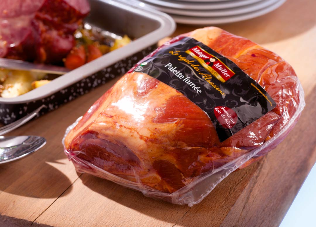 Produktspektrum: große Fleischstücke, ganze Bratenstücke, Schinken und Geflügel, Pizza oder Käse.